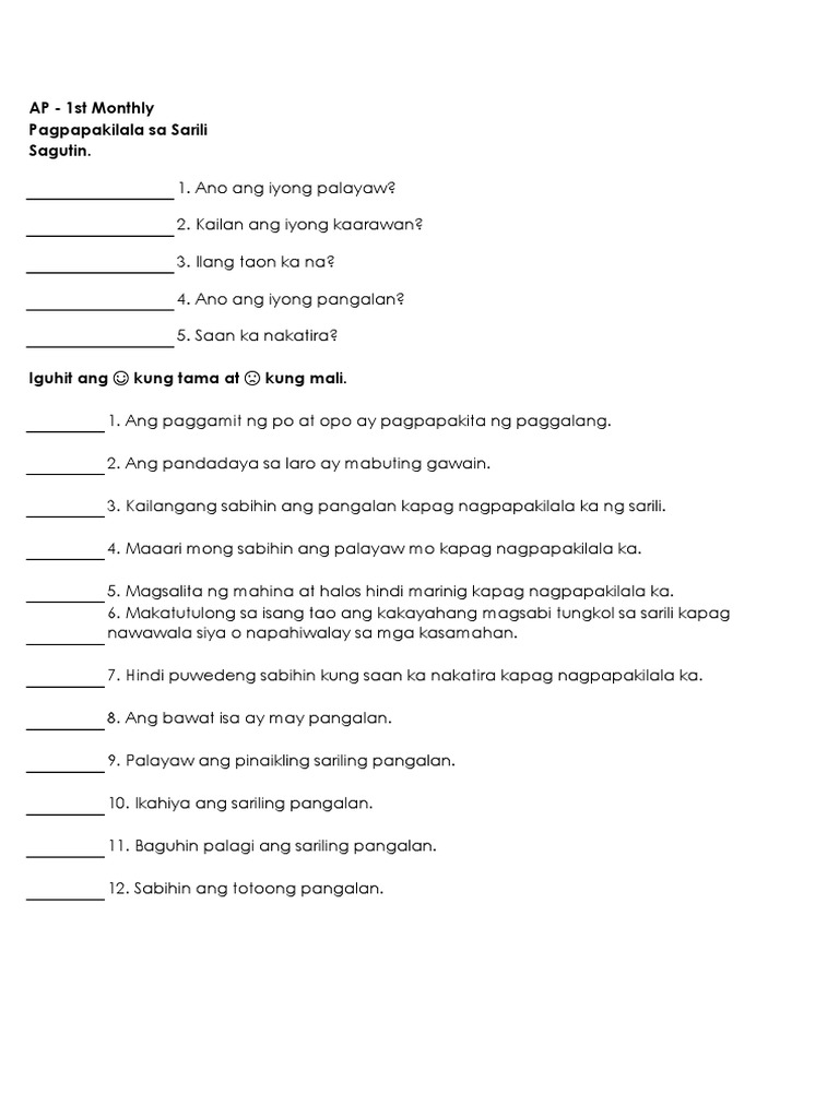 Araling Panlipunan Pagpapakilala Sa Sarili